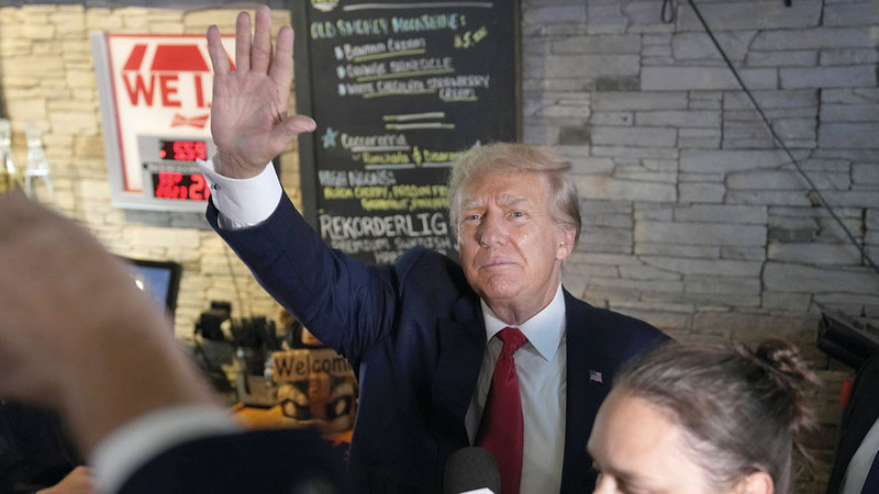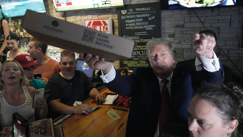 ترامب يوزّع «البيتزا» على مناصريه في مطعم بولاية أيوا