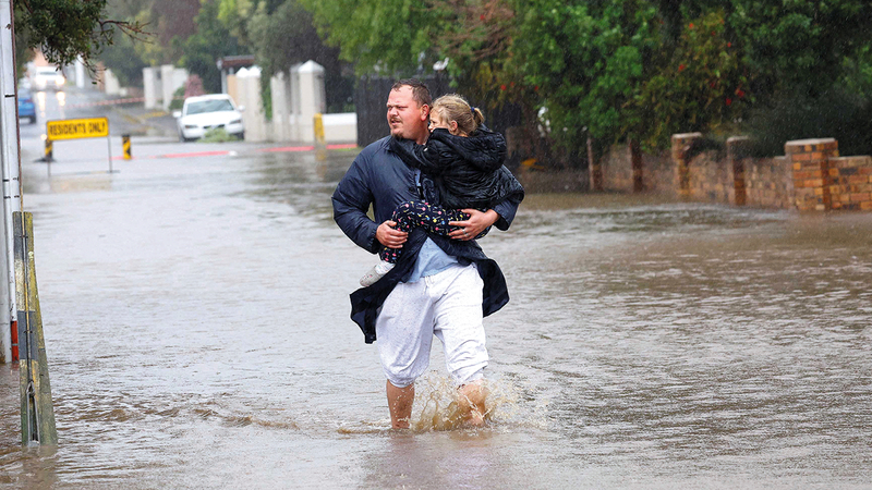 وتمّ إجلاء عشرات السكان بعدما حاصرتهم المياه. وأدّت العاصفة إلى فيضان أنهر وانقطاع التيار الكهربائي عن أحياء عدّة في كيب تاون، المدينة السياحية المطلة على المحيط الأطلسي.