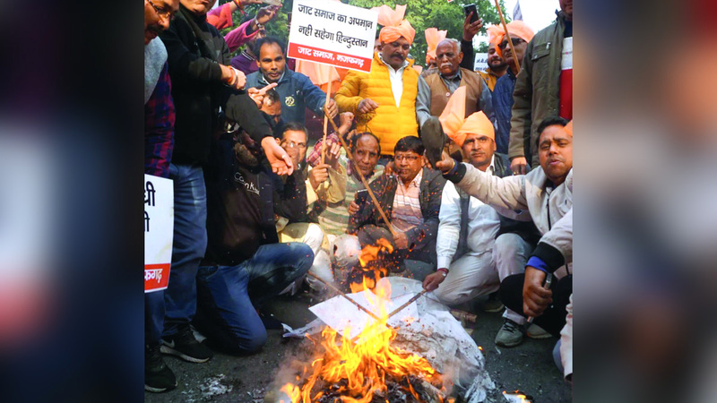 مؤيدو حزب بهاراتيا يحتجون على تهكم أحد نواب البرلمان على رئيس مجلس الشيوخ. غيتي