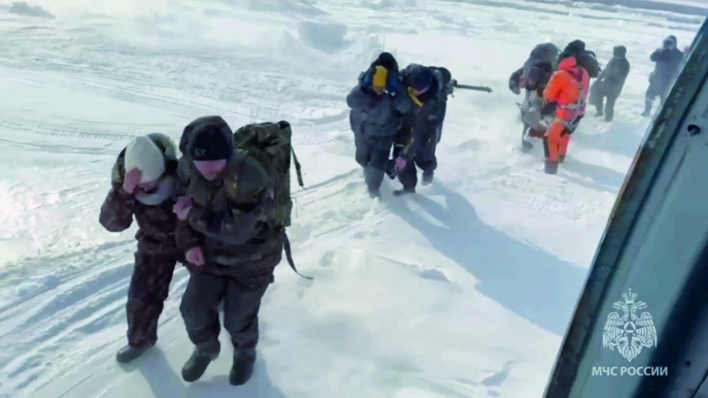 روسيا تنقذ صيادين تقطعت بهم السبل على طوف جليدي