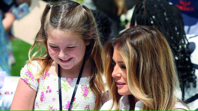 في ظهور نادر، كشفت السيدة الأميركية الأولى، ميلانيا ترامب، عن الجانب الأمومي من شخصيتها، خلال مشاركتها في فعالية «اصطحب طفلك إلى العمل»، التي أُقيمت في البيت الأبيض، الأسبوع الماضي.