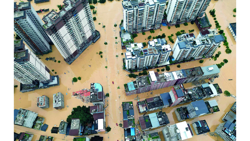 وفي منطقة رونغجيانغ غمرت المياه ملعب كرة قدم بارتفاع ثلاثة أمتار، وفقاً للوكالة، وتعاني الصين حالياً طقساً قاسياً، إذ شهدت العاصمة بكين، هذا الأسبوع، أحد أشدّ أيام السنة حراً، بينما أجلت السلطات، الأسبوع الماضي، عشرات الآلاف من الأشخاص في مقاطعة هونان بوسط البلاد بسبب الأمطار الغزيرة.