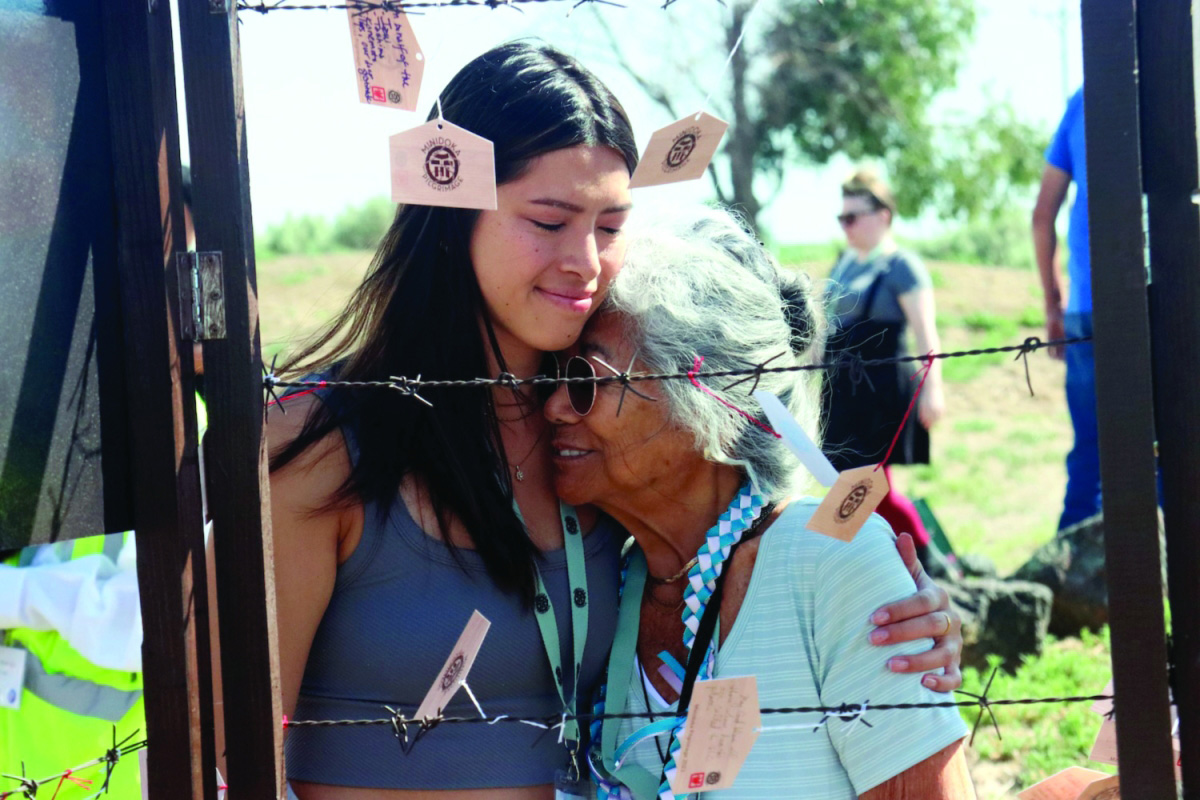 امرأة يابانية تحتضن أمها التي ولدت في مركز اعتقال خلال الحرب العالمية الثانية. من المصدر