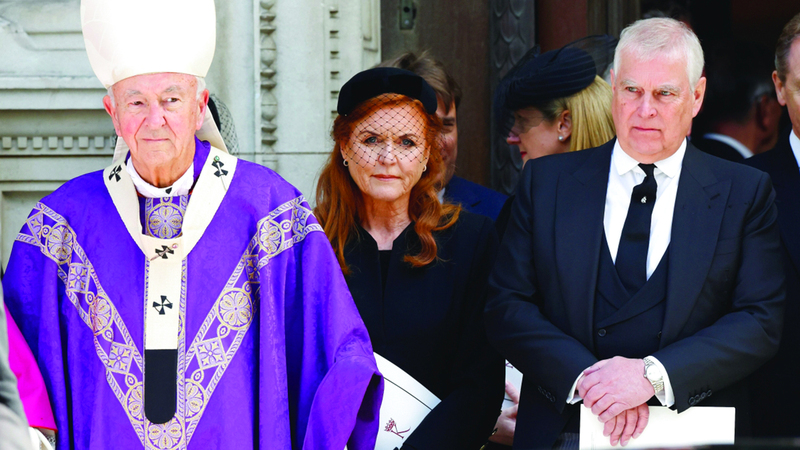 أندرو وسارة ظهرا علناً خلال جنازة دوقة كينت في كاتدرائية وستمنستر. من المصدر