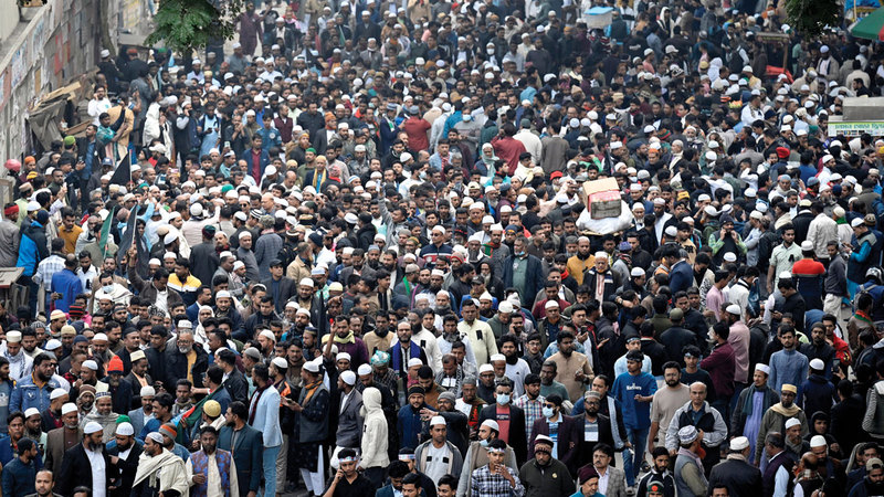 توافدت، أمس، حشود ضخمة على المنطقة المحيطة بمبنى البرلمان الوطني لبنغلاديش في العاصمة دكا، لحضور صلاة الجنازة على رئيسة الوزراء السابقة، خالدة ضياء، التي توفيت، أول من أمس، عن عمر ناهز 80 عاماً، بعد صراع طويل مع المرض.