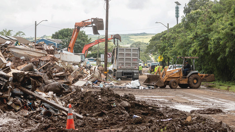 وأفادت السلطات بتضرر مئات المنازل، إلى جانب عدد من المدارس ومستشفى، بينما تسببت أمطار جديدة، أول من أمس، في موجة فيضانات إضافية جنوب جزيرة أواهو، بينما انشغل سكان الساحل الشمالي بتنظيف منازلهم وتقييم الخسائر التي خلفتها عواصف الأسبوع الماضي.