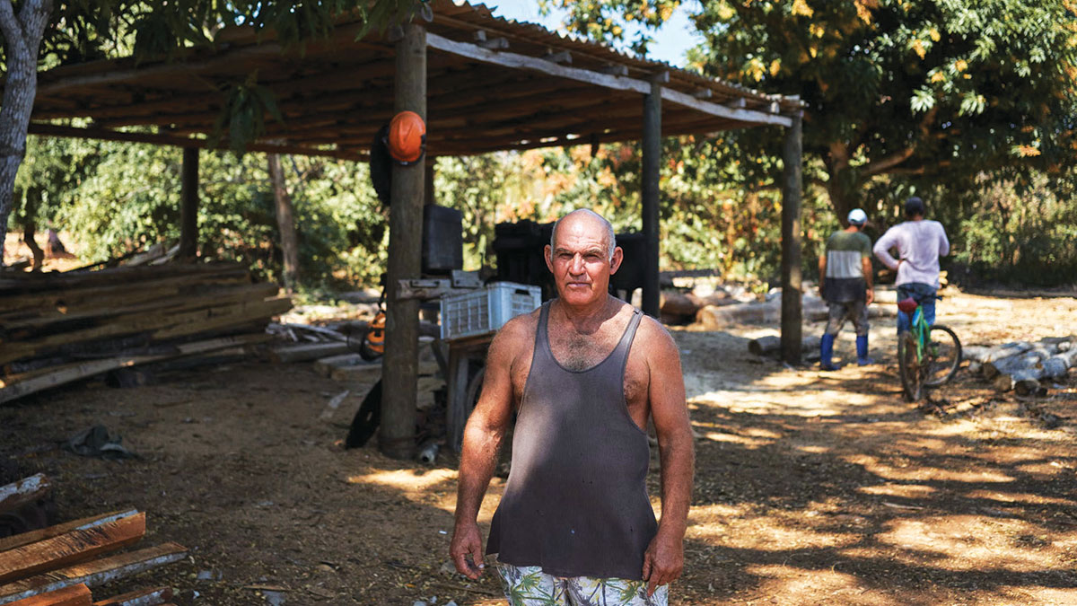 ويبدأ لويس يومه باكراً بالتوجه إلى الغابة، حيث يقوم بقطع خشب المارابو، ثم ينقله إلى منزله باستخدام جرار.