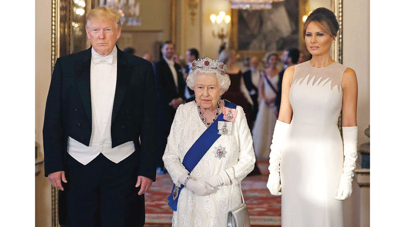 وقد عبّر ترامب، مراراً، عن إعجابه بالملكة، مشيداً بلباقتها وحفاوة استقبالها له ولزوجته داخل القصور الملكية.