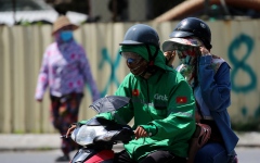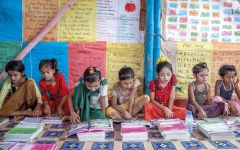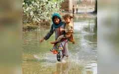 استمرار جهود الإغاثة في جنوب شرق آسيا أطفال يجلسون داخل حاوية بلاستيكية أثناء إجلاء السكان من منطقة غمرتها الفيضانات، بسبب الأمطار الغزيرة بمنطقة ديلي