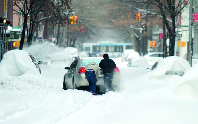 اتجهت العاصفة الثلجية القوية التي ضربت شمال شرق الولايات المتحدة نحو كندا، بعد أن أدت الرياح العاتية وتساقط الثلوج بكثافة إلى إشاعة حالة من الفوضى في المنطقة، أمس، مع استمرار الاضطراب في حركة النقل الجوي والبري. وخفت حدة العاصفة، حيث انقشعت الغيوم عن المنطقة التي غطتها الثلوج والجليد، وخلت الطرق السريعة من السيارات باستثناء تلك العالقة، وبدأت حركة النقل الجوي في العودة بعد فتح المطارات، على الرغم من الصعوبات التي خلّفتها العاصفة. وتم إلغاء أكثر من 5000 رحلة طيران، بعد أن ضربت رياح بسرعة 150 كلم في الساعة مناطق من شمال كارولاينا حتى ماين. وقال مسؤولون إن حجم الاضرار الهائل لن يتضح قبل يوم الجمعة. وشلت العاصفة العاتية الحركة في مئات المدن والبلدات والطرق السريعة والجسور، بعد أن غطتها كميات كبيرة من الثلوج. وقامت طواقم الطوارئ بإنقاذ مئات السائقين من الطرق، كما عانى مئات الركاب في أحد أنفاق القطارات في مدينة نيويورك من ليلة طويلة باردة، بعد أن علق قطارهم في النفق.