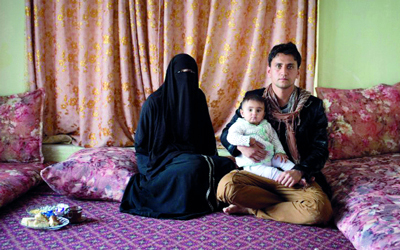 عبده مع عائلته عمل مترجماً للقوات الألمانية ويخشى الموت حالياً. أرشيفية