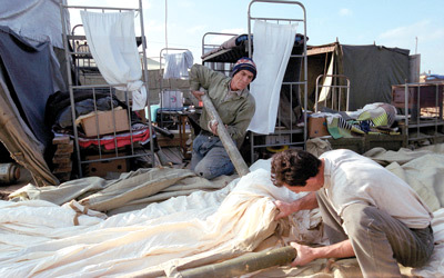 شيشينيان ينصبان خيمة بعد طلبهما حق اللجوء إلى ألمانيا. غيتي