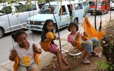 أطفال يلعبون في أحد الأحياء العشوائية في ضواحي العاصمة الإندونيسية جاكرتا، ويعاني آلاف الأطفال في البلاد انعدام الخدمات وقلة المرافق الترفيهية.