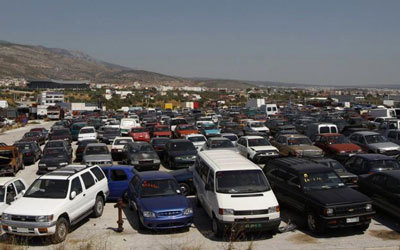 ولطالما كان اليونانيون يحبون سياراتهم بصورة غير عادية، إذ يمتلك العديد من اليونانين أكثر من سيارة واحدة، لكن في هذه الأيام أصبحت الدولة عبارة عن مكب كبير للسيارات المستهلكة والقديمة، وهو دليل إضافي على الوضع الاقتصادي الصعب الذي يعيشه سكان البلاد.