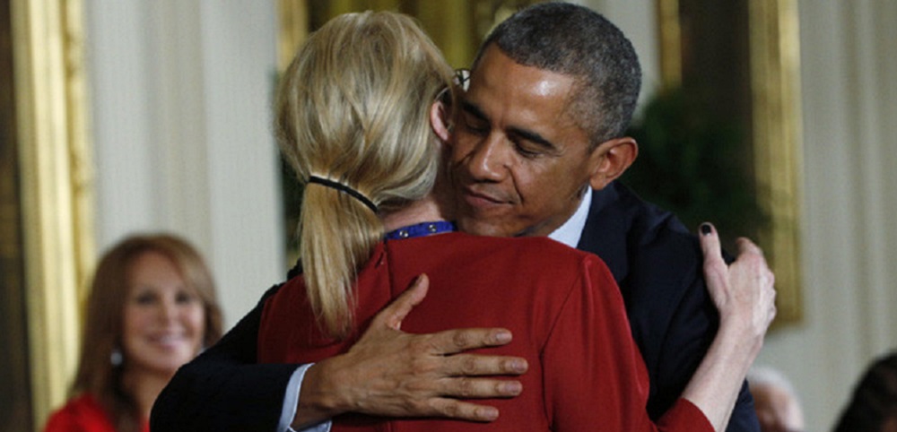 وقال اوباما" أحبها. ويعرف ذلك زوجها وزوجتي ميشيل، ولا استطيع فعل شيء بذلك" ، الأمر الذي اثار ابتسامة الحاضرين في الفعالية، ثم عانقها وقبلها في خدها، وشأنها شأن غيرها من المكرمين بالميدالية.
