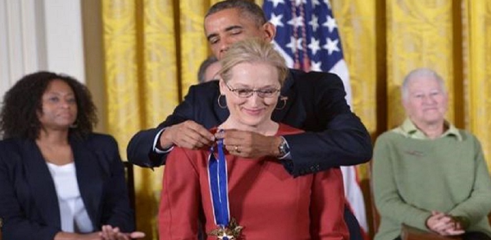 اعترف الرئيس الأميريكي باراك أوباما، وهو يمنح ميدالية الحرية للممثلة ميريل ستريب، بحبه لها، بحضور زوجته ميشيل في المراسم.