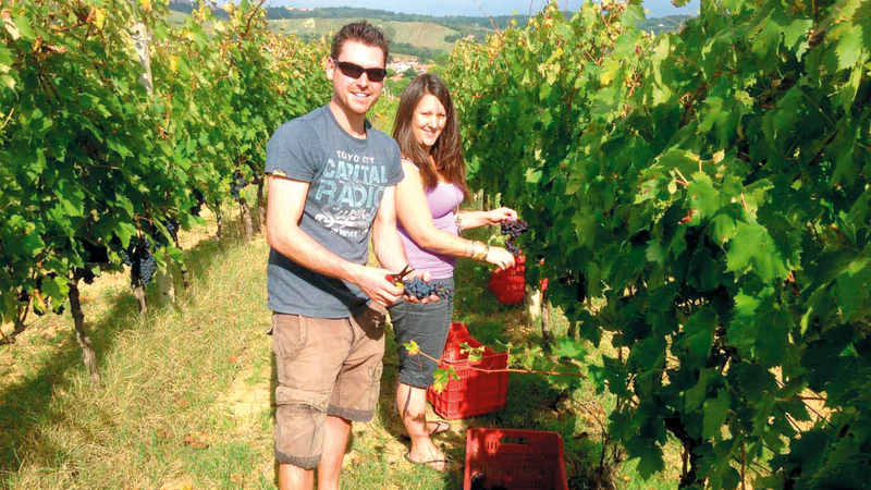 وينقسم السياح العاملون في جمع محصول العنب إلى أزواج، حيث يمشي كل زوج بين الممرات الموجودة في كروم العنب، وبين الفينة والأخرى يلتقطون صور الـ«سلفي»، ويأتي السائحان فيلا وزوجها نلسون اسبيتيا للمرة الأولى إلى جمع العنب من الكروم، وهما يشعران بحماس شديد إزاء هذا العمل الجديد بالنسبة لهما، وهما يقطعان عنقوداً بعناية كبيرة، ثم يضعانه في السلة، وقال الزوج: «أنا مهندس أعمل في إحدى الشركات وأردت تعلم كيفية جمع العنب وتخميره، ونحن لم نشاهد مثل هذا من قبل. إنه أمر جميل جداً».