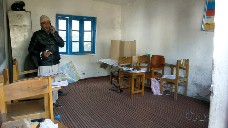 مشرف انتخابات داخل مكتب اقتراع، خلال المرحلة الأولى من الانتخابات المحلية في سريناجار، الشطر الهندي من كشمير. وتقول الهند إن الانتخابات تعد ممارسة حيوية أساسية، لتعزيز التنمية ومعالجة القضايا المدنية.