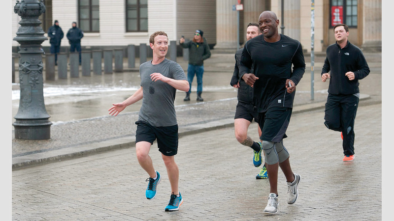 زوكربيرغ يمارس الرياضة في العاصمة الألمانية مع حراسه الشخصيين. إي.بي.إيه