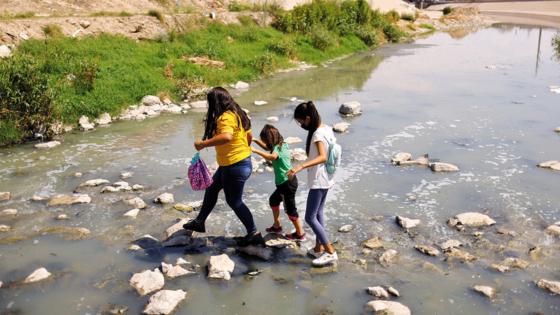 فتيات مهاجرات من هندوراس غير مصحوبات بذويهن، يعبرن نهر ريو برافو لتسليم أنفسهن إلى حرس الحدود الأميركي لطلب اللجوء في الولايات المتحدة.