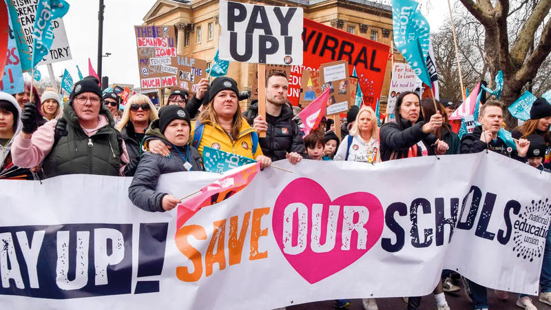 تظاهرات قام بها المعلمون المضربون في فبراير الماضي في لندن. أرشيفية