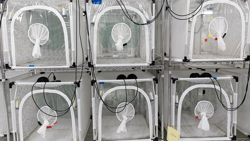 حاضنات البعوض الذي ينتجه المشروع. أ.ب