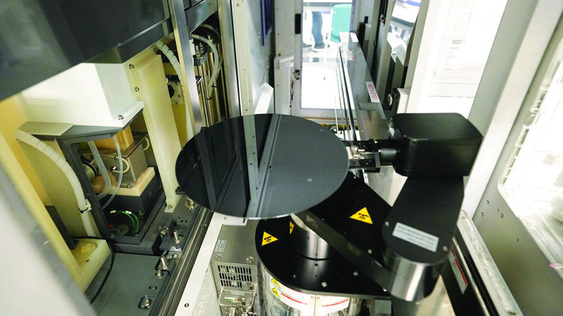 وتم تصميم المركز على أعلى درجة من التقدم التقني، ففي إحدى الغرف تقوم ذراع آلية دوارة بتنظيف وتلميع رقاقة شبه موصلة عن طريق الضغط عليها على وسادة، في عملية تعرف باسم التلميع الكيميائي الميكانيكي، وفي مرحلة أخرى تقوم آلة برفع حزمة من الرقائق إلى السقف وتحركها حول المنشأة.
