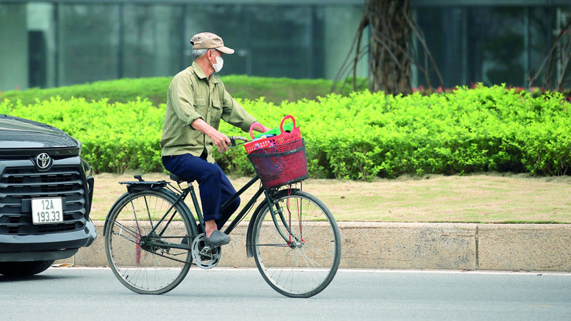 رجل يرتدي قناعاً يركب دراجة في أحد شوارع العاصمة الفيتنامية هانوي. ووفقاً لتصنيف مؤشر جودة الهواء الأخير، الذي أجراه مؤشر «إير فيجيوال»، تعد هانوي من بين أكثر المدن تلوثاً في العالم. وكانت الحكومة قد أعلنت في 2019 خططاً لرصد التلوث الهوائي. وقال وزراء البيئة الفيتناميون إنهم يعتزمون إقامة شبكة تضم محطات لمراقبة الهواء بإشراف من الدولة عبر البلاد. ولم تفلح هذه الجهود، إلى الآن، في كبح جماح التلوث الذي يتفاقم عاماً بعد عام.
