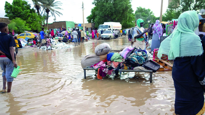 السودانيون المشردون يمشون في شوارع غمرتها المياه. رويترز