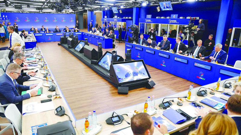 خلال اجتماع زعماء الاتحاد الأوروبي في قمة بودابست. أ.ف.ب