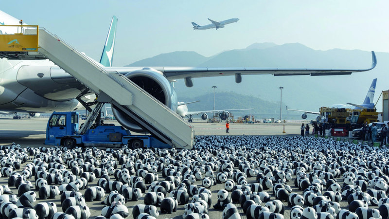 وتم عرض 2500 مجسم في مطار هونغ كونغ، أمس، على هامش إطلاق معرض «باندا جو»، أكبر معرض في المدينة يتناول موضوع «الباندا»، وسيتم عرض هذه المجسمات علناً بشارع النجوم في تسيم شا تسوي، وهي منطقة تسوق شهيرة، نهاية هذا الأسبوع، قبل تنظيم هذا المعرض في ثلاثة مواقع أخرى خلال ديسمبر.