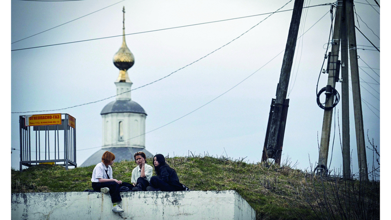فتيات يجلسن على جدار في بلدة فيريا الروسية الصغيرة، على بعد 100 كيلومتر جنوب غرب موسكو، وتُعدّ فيريا أصغر بلدة في منطقة موسكو، ويبلغ عدد سكانها 4910 أشخاص، وقد تأسست عام 1371 وظل عدد سكان البلدة ثابتاً منذ عام 1856.