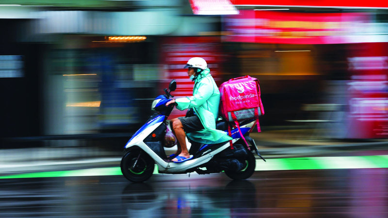 عامل توصيل طعام على دراجته النارية يناور في الشارع أثناء هطول الأمطار في تايوان. وضرب إعصار داناس بلدة بوداي بمقاطعة تشيايي في وقت متأخر أول من أمس، وتراجعت قوته إلى عاصفة استوائية صباح أمس، وأفاد مركز عمليات الطوارئ المركزي بوفاة شخصين وإصابة 334 آخرين في تاينان بسبب الرياح القوية والأمطار الغزيرة. إي.بي.إيه