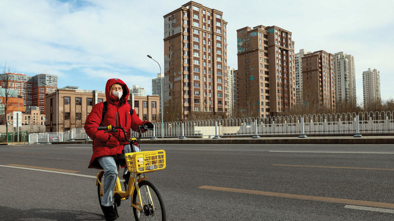 امرأة تقود دراجتها قرب مجمع سكني في العاصمة الصينية بكين، وقد أظهرت بيانات رسمية، أمس، أن أسعار المنازل الجديدة في الصين واصلت انخفاضها في ديسمبر، ما يؤكد استمرار الضغوط في قطاع العقارات، وانخفضت الأسعار بنسبة 2.7% في ديسمبر، ويشير استمرار ضعف أسعار المنازل الجديدة إلى أن تراجع القطاع قد يستمر هذا العام، ما لم يتخذ صانعو السياسات تدابير أكثر قوة.