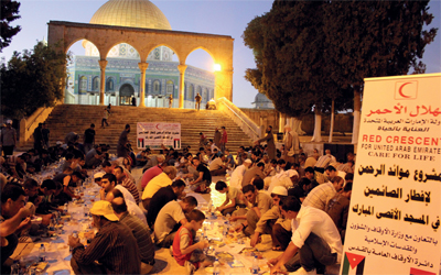 «الهلال» تقيم «موائد الرحمن» في ساحات «الأقصى»