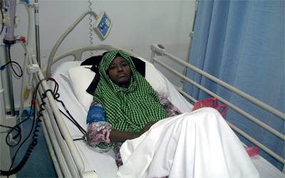 تعاني إلهام عبدالله إبراهيم (22 عاما)، سودانية، مرض الفشل الكلوي، ونتيجة لذلك توقفت عن مواصلة دراستها الجامعية، وفقدت الأمل في تحقيق طموحاتها الشخصية، إذ تخضع لعمليات غسيل بواقع ثلاث مرات أسبوعيا في مستشفى إبراهيم عبيدالله في رأس الخيمة. وهي لا تفكر حاليا إلا في شيء واحد، كما تقول، هو أن تجد فاعل خير يتبرع لها بكلية، أو يعينها على شرائها، لتواصل حياتها بصورة طبيعية.