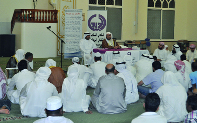 العنزي خلال محاضرة في نادي الذيد. من المصدر
