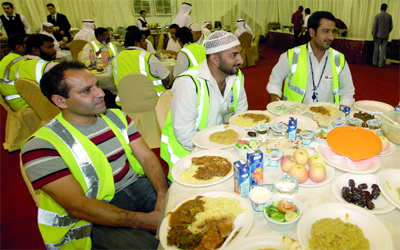 يجتمع أكثر من 700 عامل حول موائد الإفطار التي تنظمها موانئ دبي العالمية ــ الإمارات يومياً، في ميناء جبل علي خلال شهر رمضان المبارك.