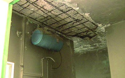 سقف المنزل بعد سقوط أجزاء منه. من المصدر
