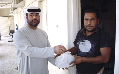 توزع شعبة الإسكان والنقل الداخلي في بلدية دبي، 4250 وجبة إفطار يومياً على جميع سكنات العمال التابعة للدائرة والتي يقدمها مكتب زعبيل كمكرمة لصاحب السمو الشيخ محمد بن راشد آل مكتوم لعمال الدائرة.