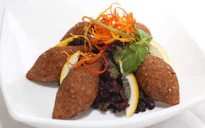8 - تقدم الكبة ساخنة إلى جانب سلطة خضراء ولبن رائب.