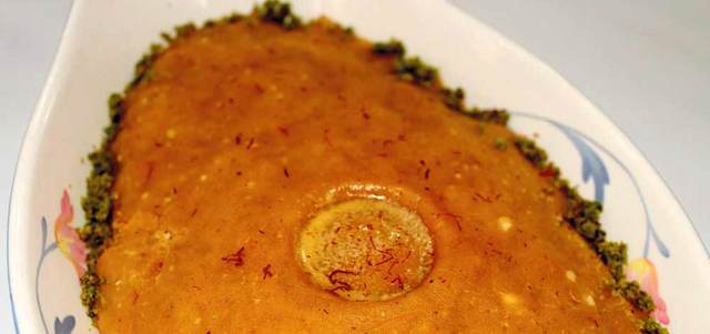 أضيفي المنكهات التي أعددتها: مسحوق الهيل والزعفران والسمن المحلي، واخلطيها إلى حد امتزاج المكونات مع بعضها البعض، ثم قومي برفع الخليط من على النار. اسكبي الخليط في إناء التقديم وقومي بتزيينه حسب الرغبة بصلصة الشوكولاتة أو صلصة الفانيلا.