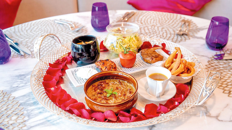 وهكذا يبدع المطعم وجبات إفطار مصممة خصيصاً بأسلوب يتغنّى بالنكهات الشهية والأطباق الكلاسيكية طوال الشهر المبارك. ومنها طبق «كابرجاه» المبتكر على الطريقة الكشميرية، وطبق «أنجارا»، إضافة إلى طبق الروبيان بالكاري، بينما تضمّ الأطباق الرئيسة «بانير دو بيازا» المكوّنة من جبنة حلوم وبصل يتم تقديمه بالطريقة التي سادت أيام شاه جاهان، و«جاريس» المكوّن من لحم ضأن مطهو على نار هادئة مع القمح والبصل المكرمل، ويحلو ختام الإفطار مع مجموعة من أطايب التحلية.