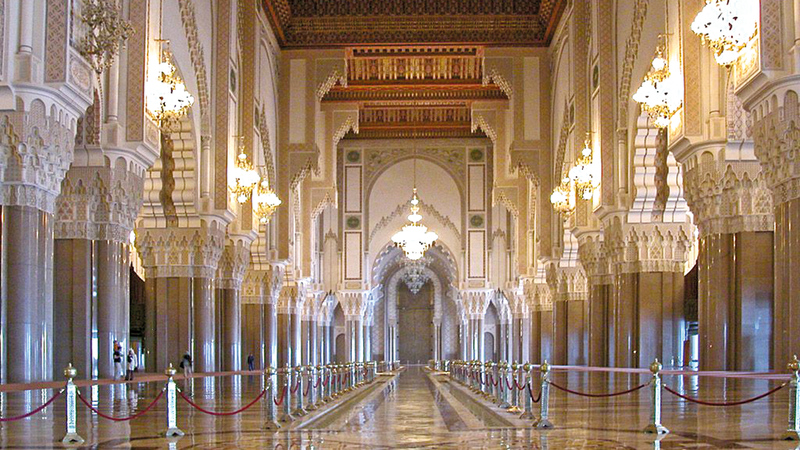 لا يمكن الحديث عن الدار البيضاء، أو مدينة كازابلانكا المغربية، دون التطرق إلى مسجد الحسن الثاني، الذي يعتبر أيقونة العمارة المغربية الأندلسية، وواحدة من الجواهر التي أتقنت صياغتها الأيادي الحرفية المحلية المغربية على مدى ست سنوات هي مدة الإنجاز، ليقف هذا المسجد منذ 28 عاماً وحتى يومنا هذا على أطراف المحيط، شامخاً تحتشد به ملايين الصلوات والدعوات.