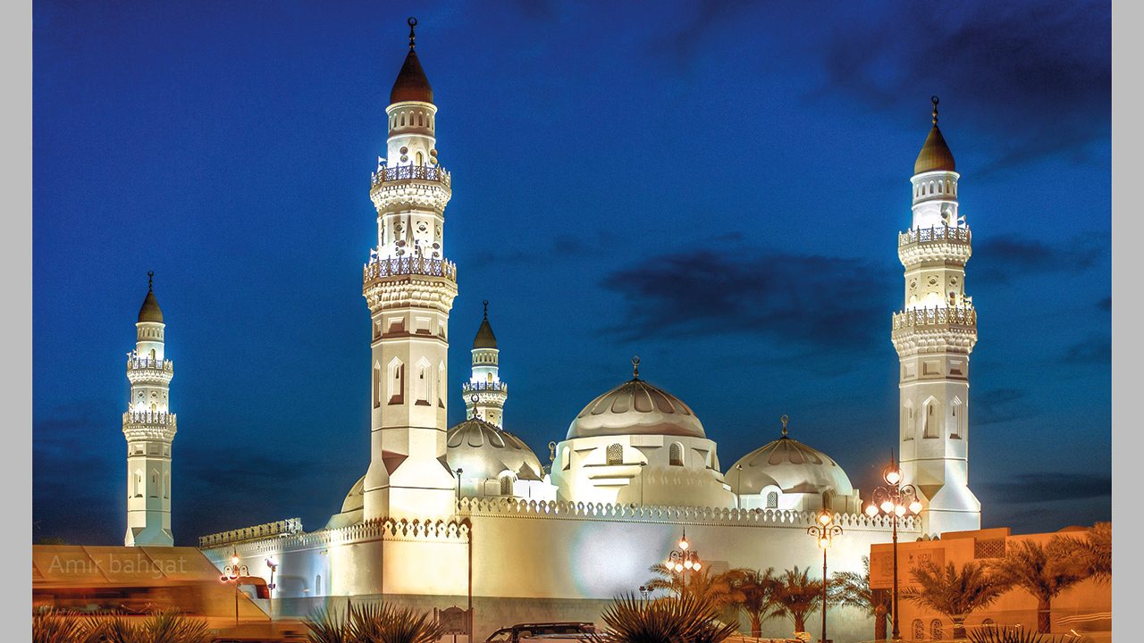 • وضع رسول الله أول حجر في قبلته عام 622 ميلادية، وميّزه عن غيره من المساجد بزيارته والصلاة فيه كل يوم سبت.