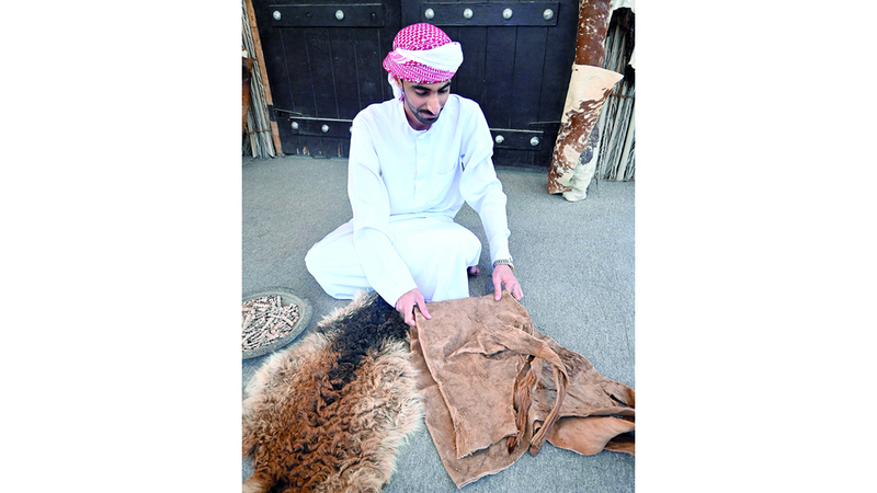 وقال سلطان المعمري لـ«الإمارات اليوم» إن دباغة الجلود من الحِرف الشعبية التي عرفها أهل الإمارات منذ سنوات طويلة، وتعتمد على جلود الحيوانات التي كانت تتوافر في البيئة من حول الإنسان الإماراتي، إذ يتم استخدام جلود الأغنام أو الأبقار.