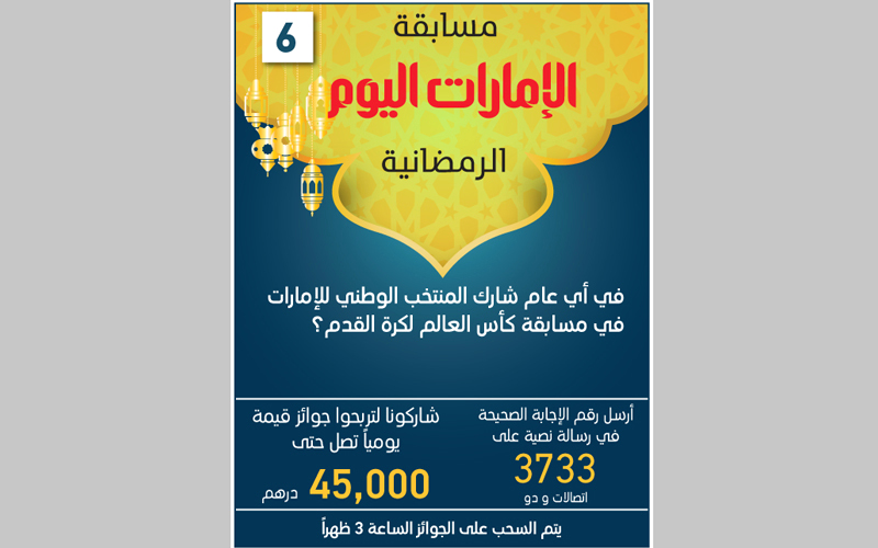 تويتر لينكدين تويتر فيسبوك مجاناً يُمكنك الاشتراك الآن بنشرتنا البريدية لتبقى على اطلاع بأبرز الأخبار والمواضيع Email address First name (إختياري) مسابقة الإمارات اليوم الرمضانية المصدر: دبي - الإمارات اليوم التاريخ: 01 يونيو 2017 Share فيسبوك تويتر لينكدين Pin Interest Whats App