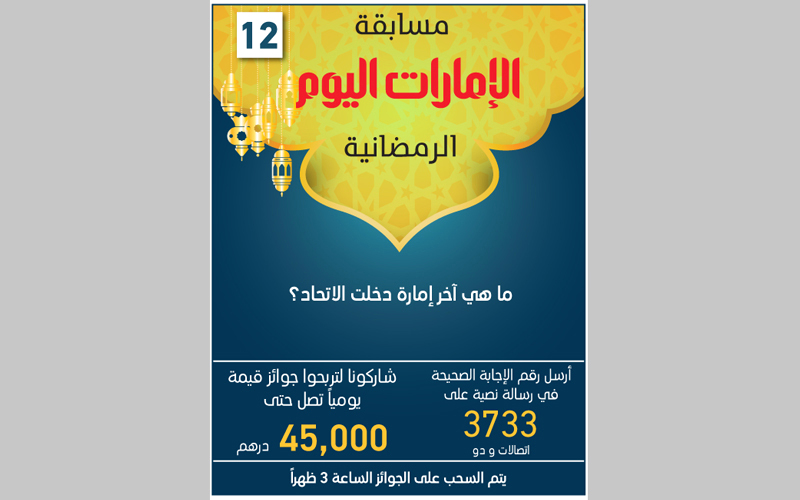 تويتر لينكدين تويتر فيسبوك مجاناً يُمكنك الاشتراك الآن بنشرتنا البريدية لتبقى على اطلاع بأبرز الأخبار والمواضيع Email address First name (إختياري) مسابقة الإمارات اليوم الرمضانية المصدر: الامارات اليوم- دبي التاريخ: 07 يونيو 2017 Share فيسبوك تويتر لينكدين Pin Interest Whats App