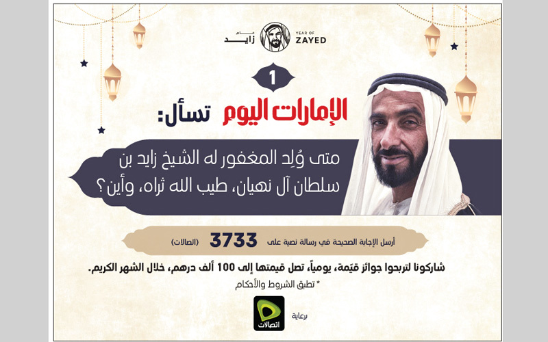 تويتر لينكدين تويتر فيسبوك مجاناً يُمكنك الاشتراك الآن بنشرتنا البريدية لتبقى على اطلاع بأبرز الأخبار والمواضيع Email address First name (إختياري) الإمارات اليوم تسأل: متى وُلِد المغفور له الشيخ زايد بن سلطان آل نهيان، طيب الله ثراه، وأين؟ المصدر: دبي - الإمارات اليوم التاريخ: 17 مايو 2018 Share فيسبوك تويتر لينكدين Pin Interest Whats App