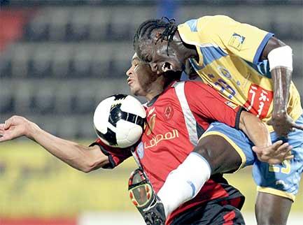لاعب الريان سيلفا ولاعب الغرافية كوسي في كرة مشتركة. رويترز